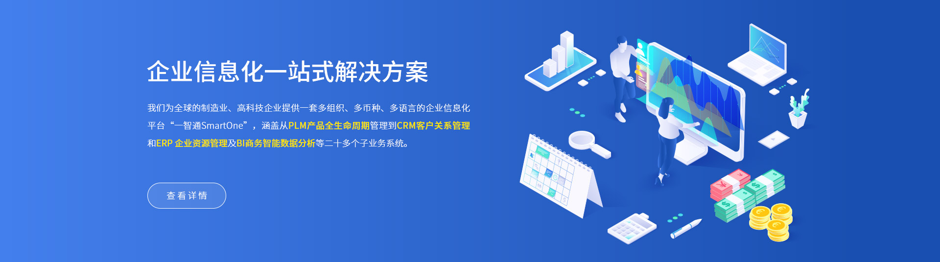 一智通(SmartOne)企業(yè)信息化一體化信息管理方案,涵蓋從 PLM 產(chǎn)品全生命周期管理 到CRM客戶關系管理和ERP企業(yè)資源管理及BI商務智能數(shù)據(jù)分析等二十多個子業(yè)務系統(tǒng)。
